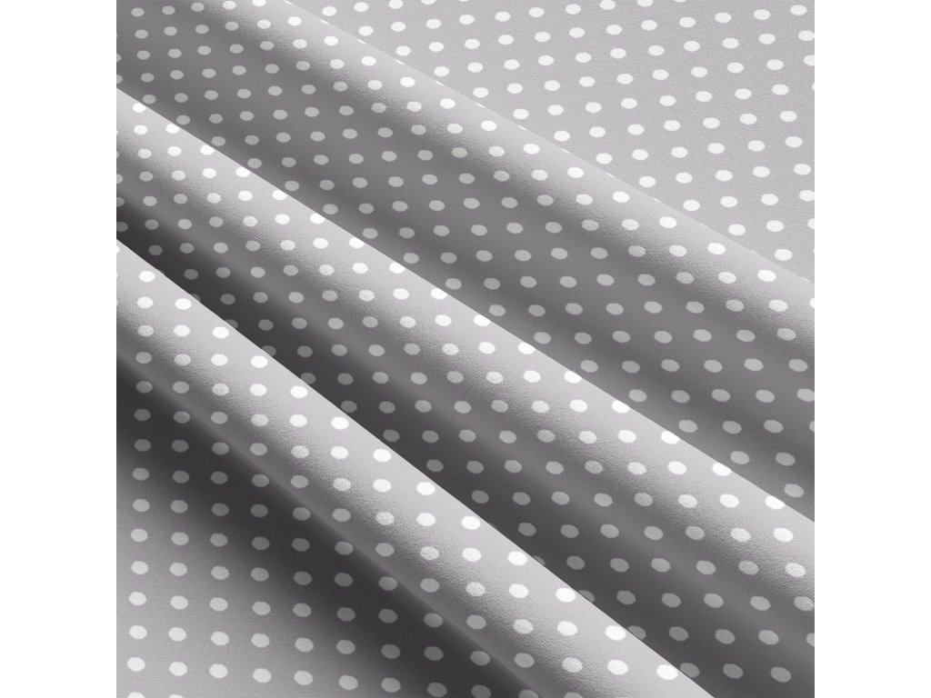 Dětské bavlněné látky, metráž. Puntík 4 mm, Bílý na Šedém