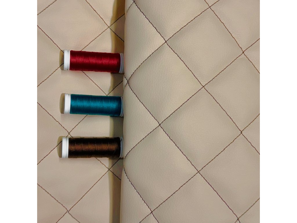 Při výrobě takové eko kůže se používají jehly a silné nitě. Tato možnost zahrnuje prošívaní skrz látku a vzor se vytváří na povrchu pomocí nití. Výběr vzorů prošívaní je široký, vše závisí na požadavcích a preferencích zákazníka. Pro více informací nás neváhejte kontaktovat individuálně