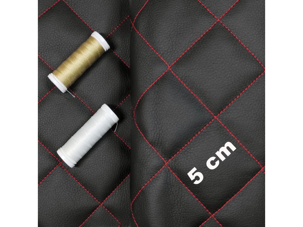 Ekokůže 5x5 barva Černá prošívaná Červenými nitěmi, metráž, 145 cm