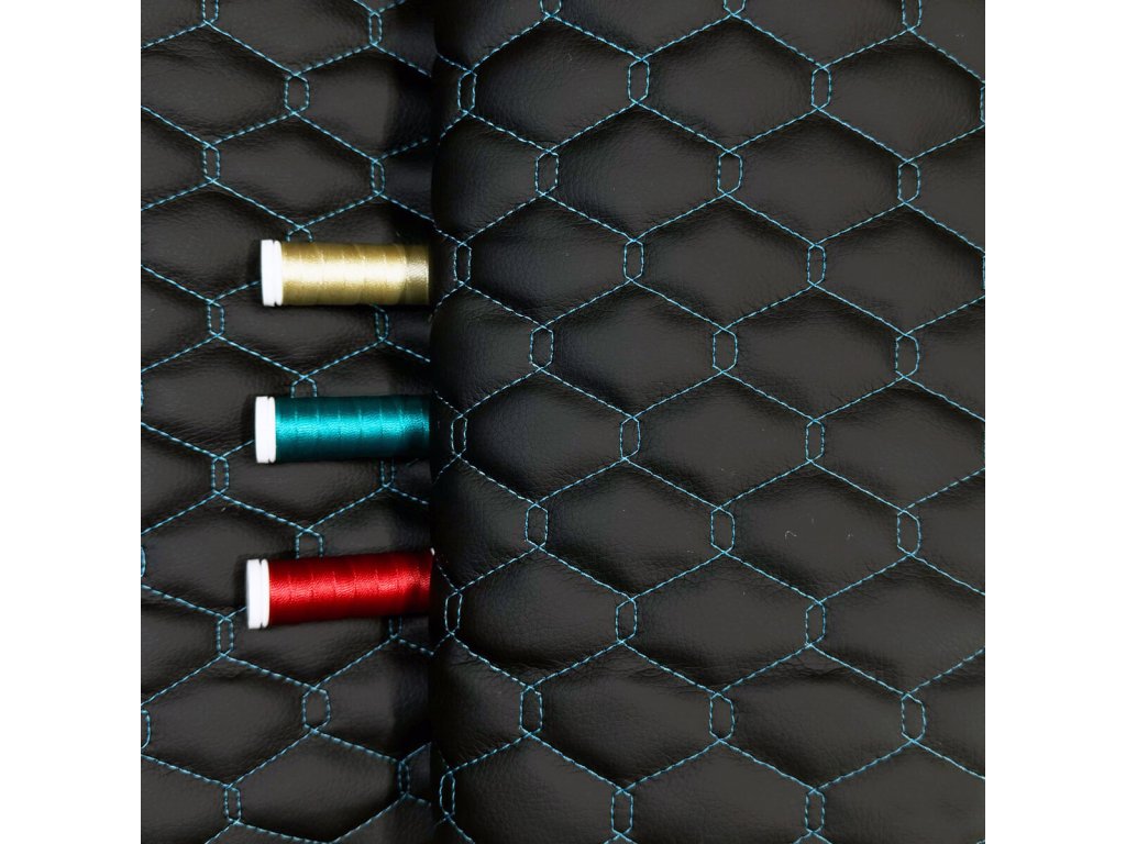 Ekokůže GEO barva Černá prošívaná Tyrkysovými nitěmi, metráž, 145 cm
