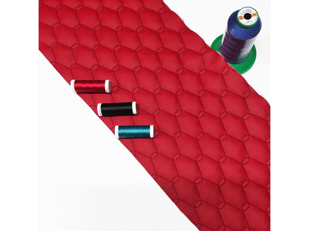 Ekokůže GEO barva Červená prošívaná Černými nitěmi, koženka metráž