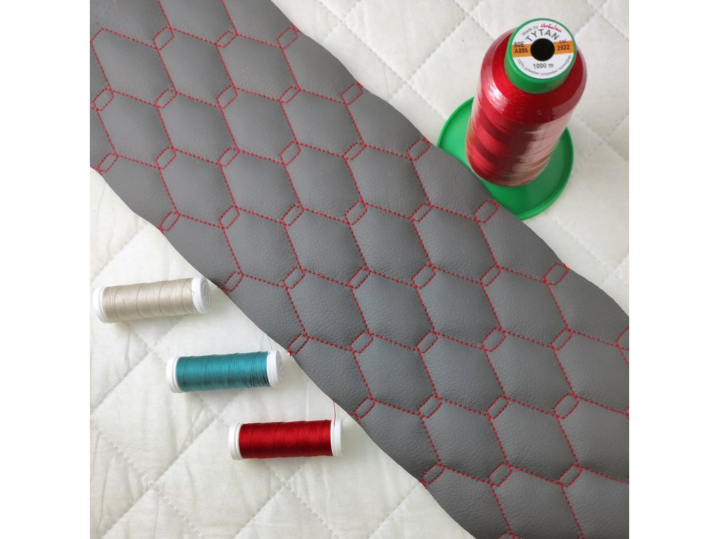 Při výrobě takové eko kůže se používají jehly a silné nitě. Tato možnost zahrnuje prošívaní skrz látku a vzor se vytváří na povrchu pomocí nití. Výběr vzorů prošívaní je široký, vše závisí na požadavcích a preferencích zákazníka. Pro více informací nás neváhejte kontaktovat individuálně