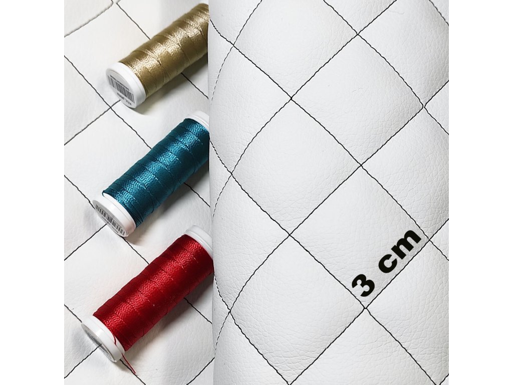 Ekokůže KLASIK 3x3 cm barva Bílá prošívaná Černými nitěmi, metráž, 145 cm