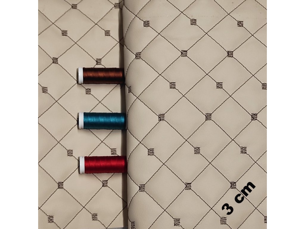 Ekokůže MIX 3x3 cm barva Béžová prošívaná Hnědými nitěmi, metráž, 145 cm