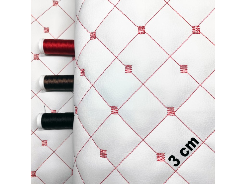 Ekokůže MIX 3x3 cm barva Bílá prošívaná Červenými nitěmi, metráž, 145 cm