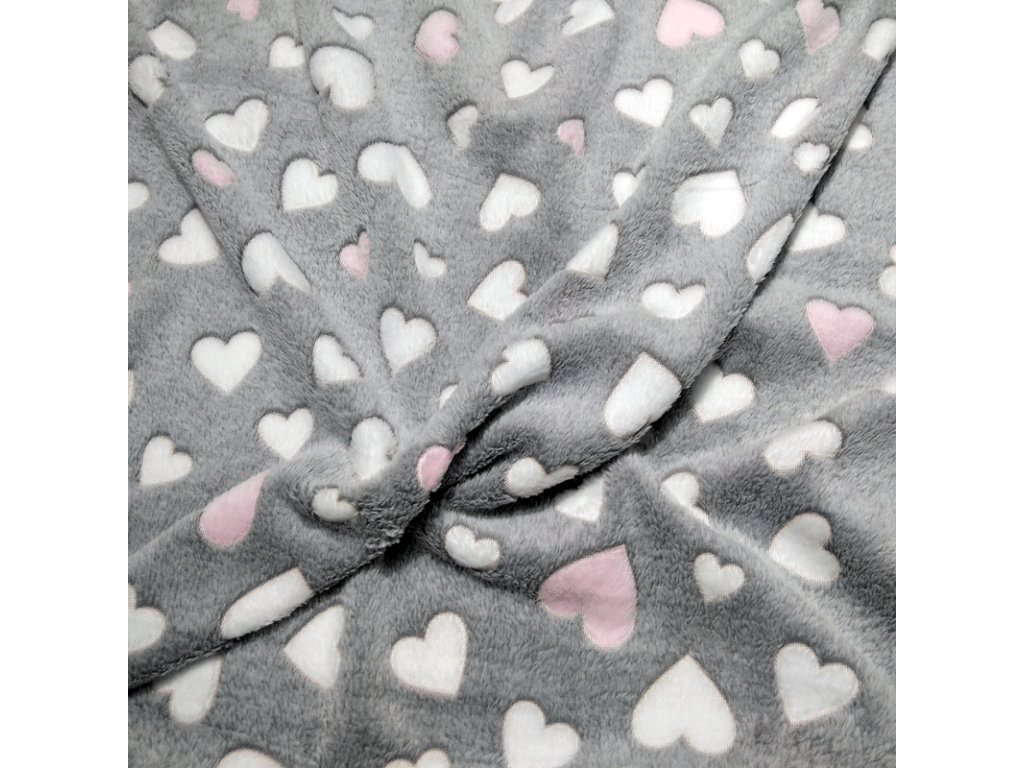 Minky Beránek Srdíčka Růžové a Bílé na Šedém