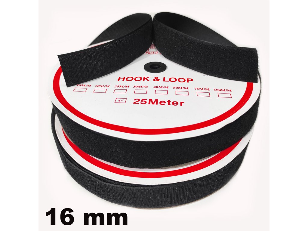 Pásek na suchý zip HÁČEK černý 16 mm, balení 25 m