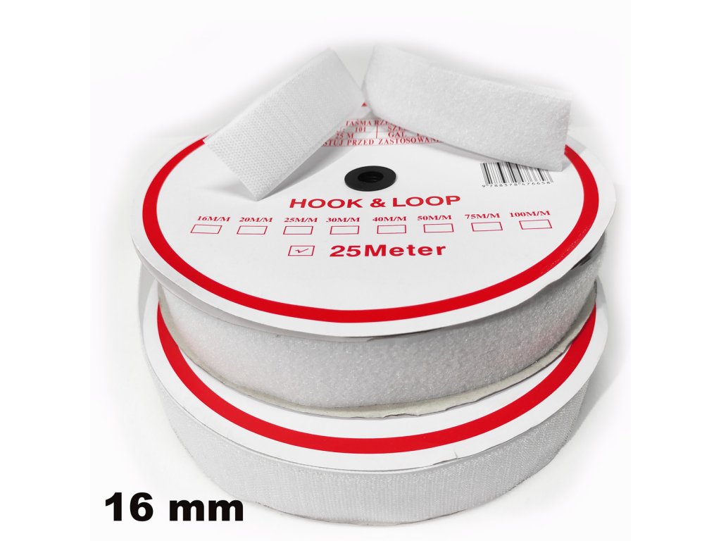 Pásek na suchý zip našívací Háček a Smyčka set, bílý 16 mm x 25 bm