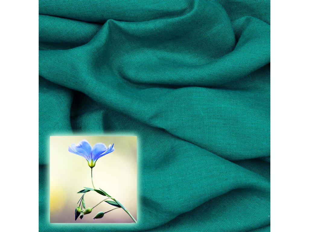 Přírodní lněná látka Oskar, Tyrkysová, 265 gr/m2