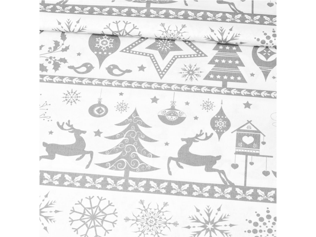 Vánoční bavlněná látka, metráž, šíře 160 cm, Skandinávský motiv Šedý na Bílém