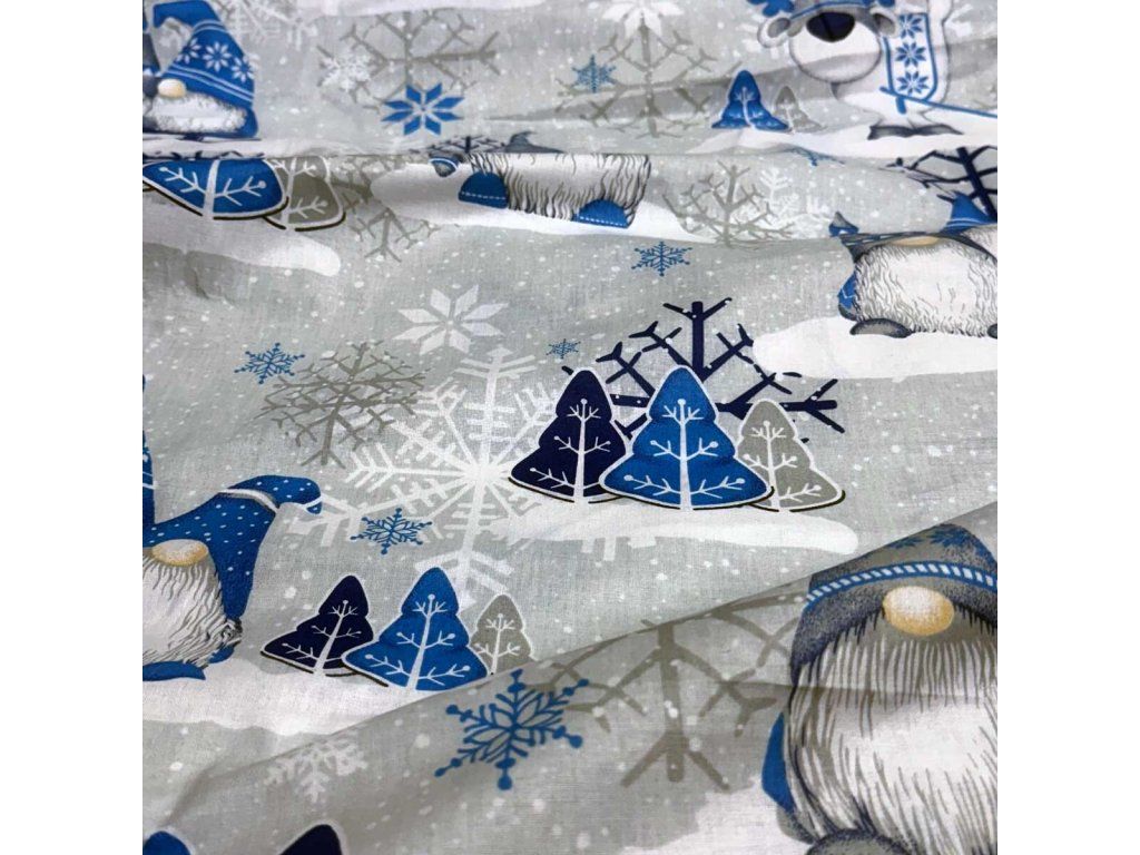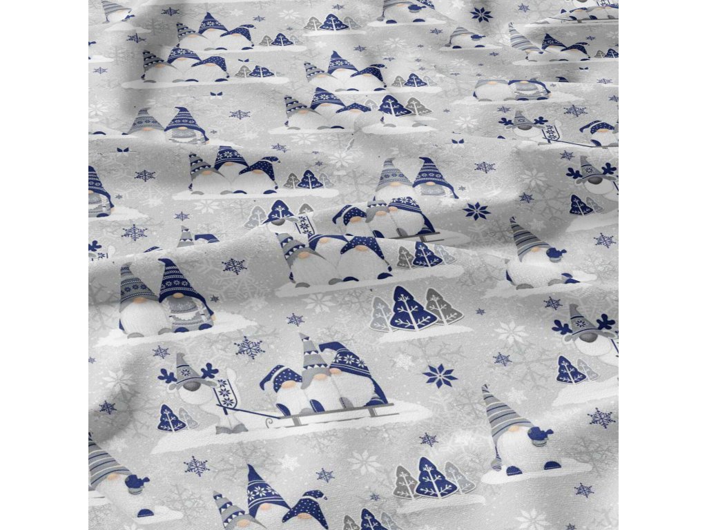 Vánoční bavlněná látka, metráž, šíře 160 cm, Skřítci Tm.Modré na Šedém