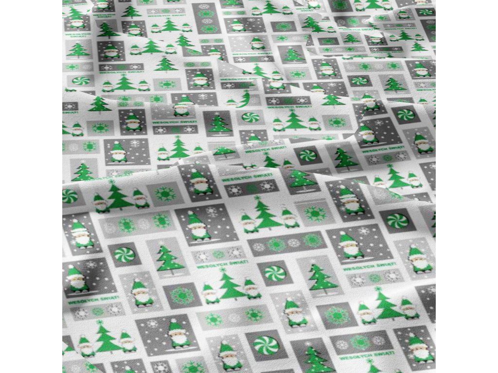 Vánoční bavlněná látka, metráž, šíře 160 cm, Vánoce Šedozelené na Bílém