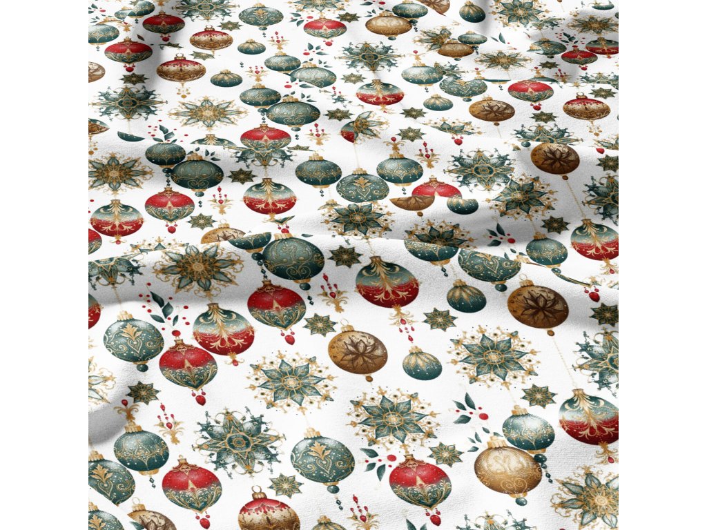 Tato látka je osvěžena krásným vánočním vzorem, který přidá kouzlo svátků k jakémukoli projektu. Je to skvělá volba pro výrobu povlečení, prostěradel, závěsů, ubrusů, domácích dekorací a dalších ručně vyráběných výrobků.
