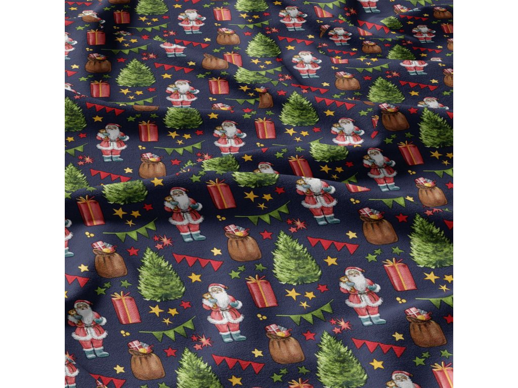 Vánoční bavlněná látka, metráž, šíře 160 cm, Vánoční Mikuláš