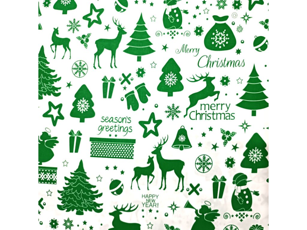Vánoční bavlněná látka, metráž, šíře 160 cm, Vánoční MIX Zelený na Bílém