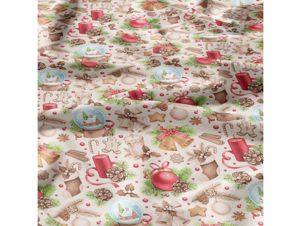 Vánoční bavlněná látka, metráž, šíře 160 cm, Vánoční ozdoby na Sv.Béžovém