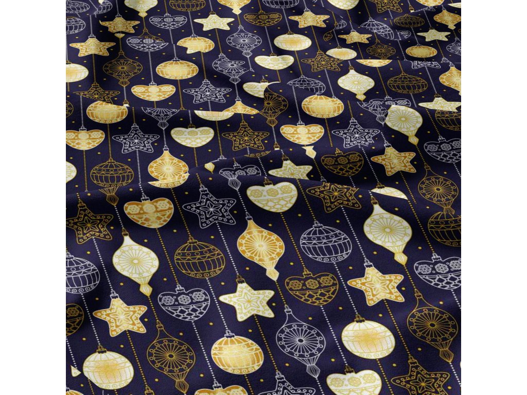 Vánoční bavlněná látka, metráž, šíře 160 cm, Vánoční ozdoby Žluté na Granátovém