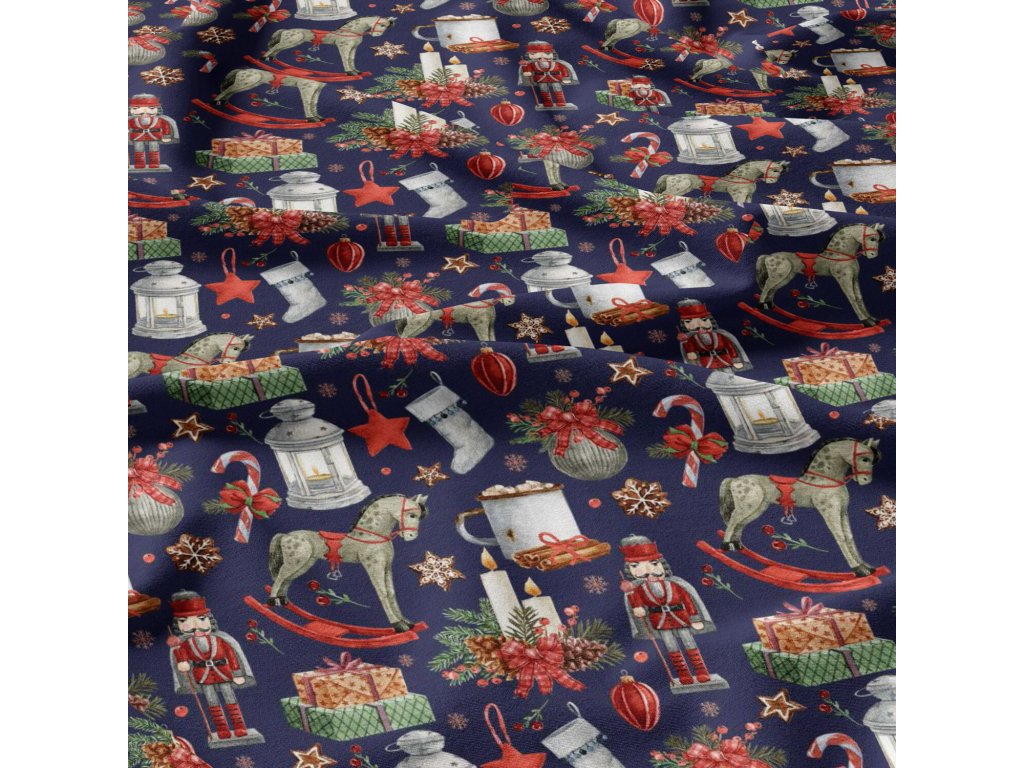 Dekorační bavlněná látka s vánočním vzorem přináší sváteční radost do vašeho domova. Tato látka je vyrobena z 100% prvotřídní bavlny, což zajišťuje lehkost a hladkost, která je příjemná na dotyk.
