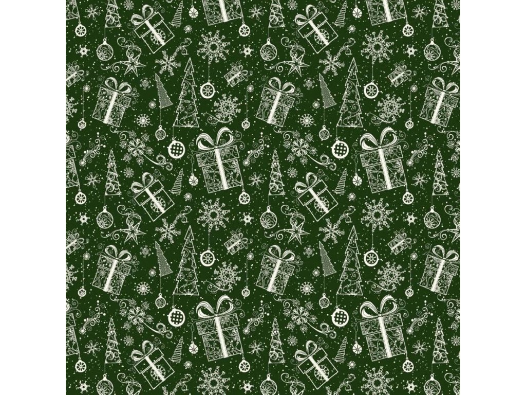 Vánoční bavlněná látka, metráž, šíře 160 cm, Vánoční vzor na Zeleném