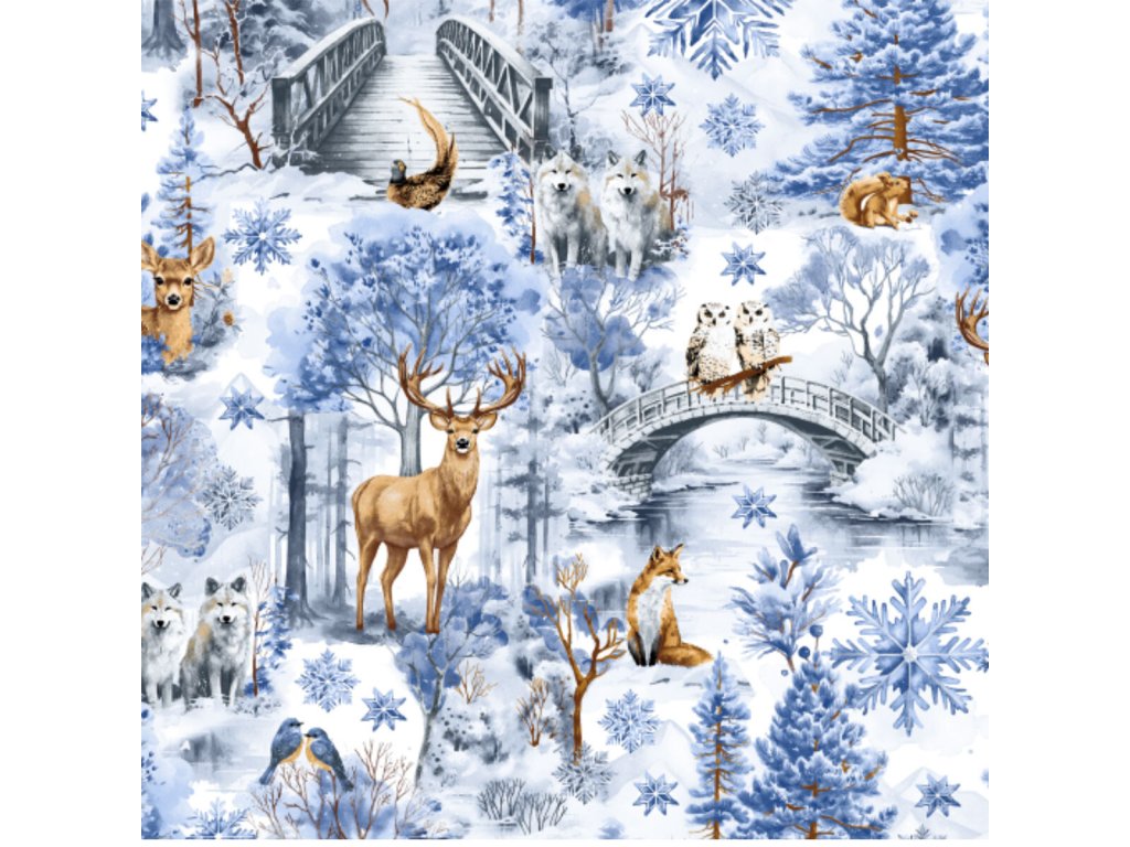 Vánoční bavlněná látka, metráž, šíře 160 cm, vzor Příroda Modrá na Bílém