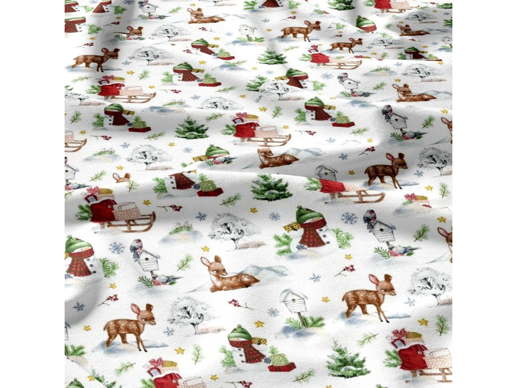 Tato látka je osvěžena krásným vánočním vzorem, který přidá kouzlo svátků k jakémukoli projektu. Je to skvělá volba pro výrobu povlečení, prostěradel, závěsů, ubrusů, domácích dekorací a dalších ručně vyráběných výrobků.