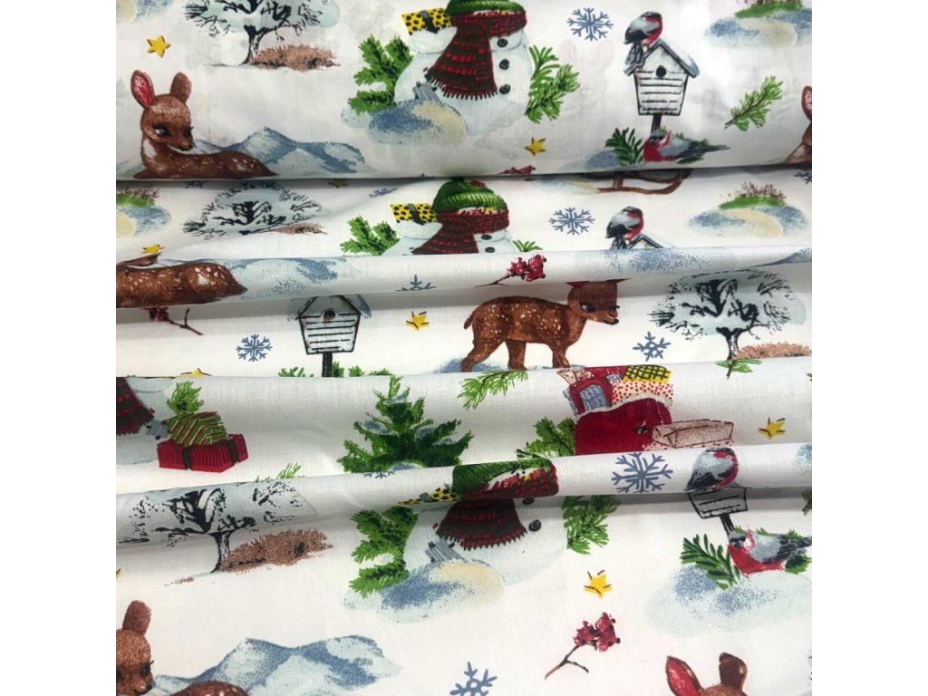 Vánoční bavlněná látka, metráž, šíře 160 cm, vzor Vánoce na Bílém 2