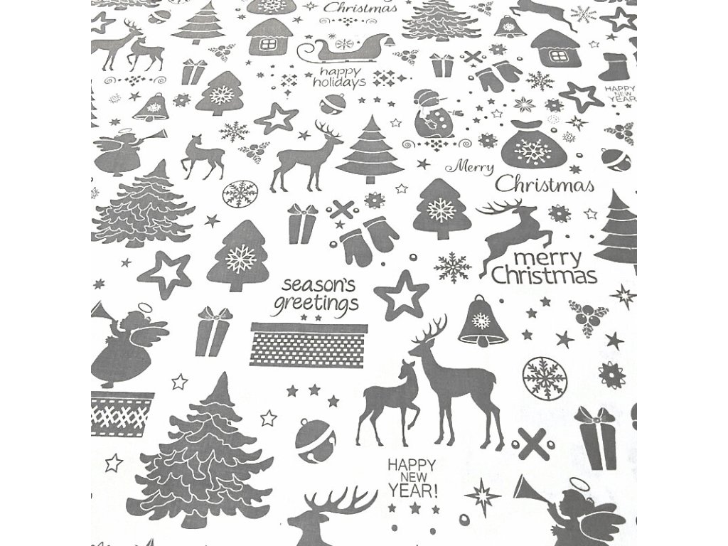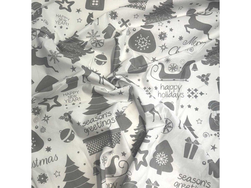 Vánoční bavlněná látka, metráž šíře 160 cm, MIX Šedý na Bílém