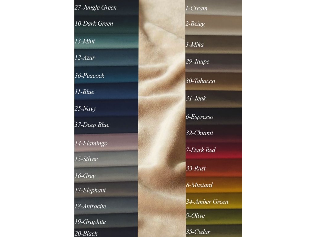 Velluto je vysoce kvalitní velurová potahová látka s jemnou, sametově hebkou strukturou, která přináší do interiéru pocit tepla, komfortu a elegance. Díky svému přirozenému vzhledu a příjemnému dotyku se skvěle hodí pro čalounění sedacích souprav, křesel, taburetů a dalších kusů nábytku. Kombinuje nadčasový design s vysokou funkčností, což ji činí ideální volbou pro moderní i klasické interiéry.