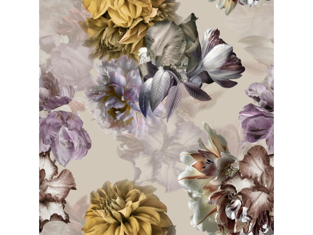 Velurové potahové látky s potiskem, Květiny na Béžovém
