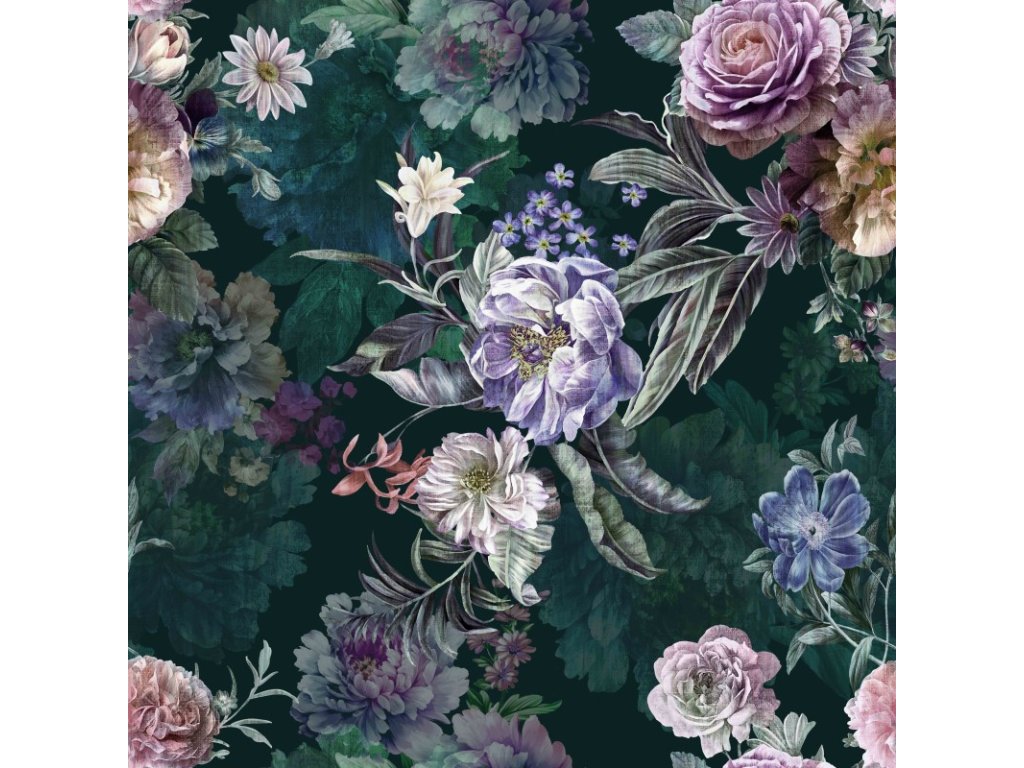Velurové potahové látky s potiskem. Květiny na Černém