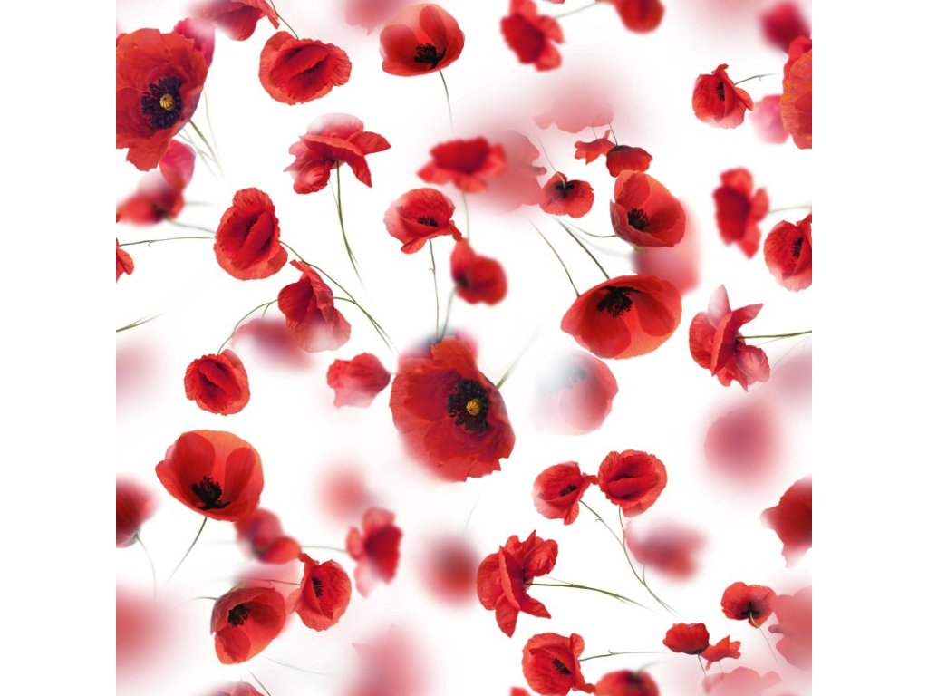 Velurové potahové látky s potiskem. Máky Červené na Bílém