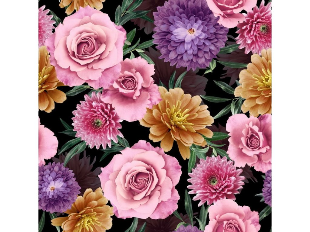 Velurové potahové látky s potiskem, Růže a chryzantémy