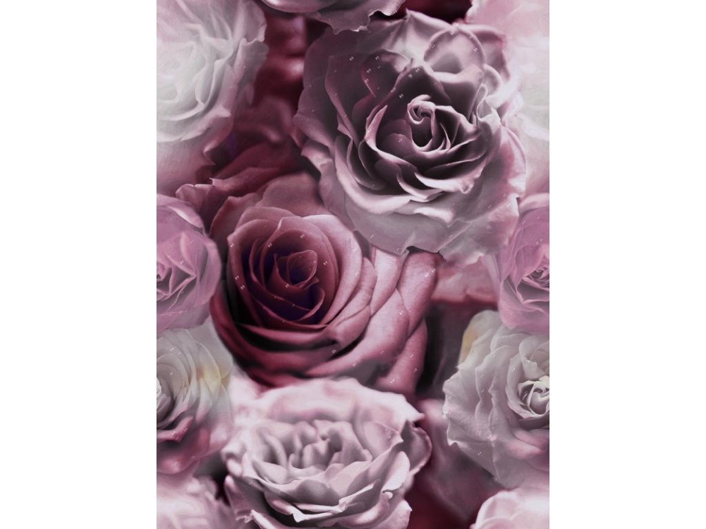 Velurové potahové látky s potiskem, Růže Růžové a Bílé