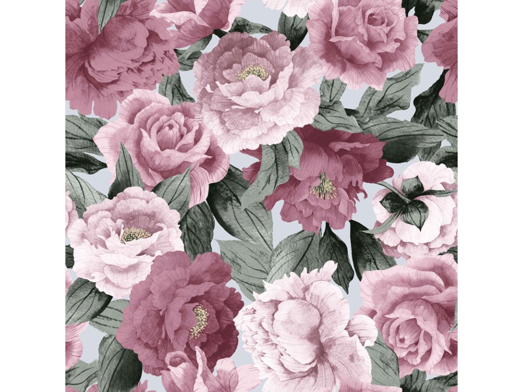 Velurové potahové látky s potiskem, Růžové růže na Bílém