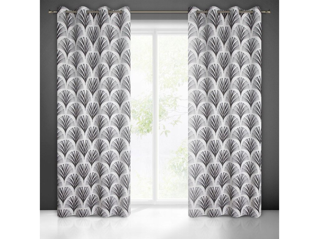 Propustnost světla je přibližně 65 %. To znamená, že závěsy jsou husté a dobře plní funkci plné sluneční ochrany. Závěsy jsou hotové k zavěšení, obsahují kovové kroužky na provlečení závěsné týče.